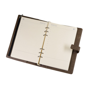 Цвет обложки, близкий к пантону 411С Размер обложки 165*225 мм Размер блока 155*215 мм Переплет твердый, крепление на кольцах Обложка PU Pinto с магнитным клапаном Блок недатированный, в линейку Прямые углы, двухкрасочная печать Бумага кремовая, плотность 70г м2 320 страниц, пенхолдер Карманы для карт, отделение на молнии