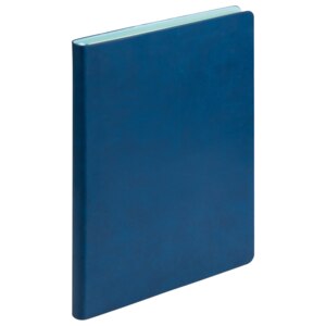Дизайн ежедневника Latte NEW выполнен в интересном цветовом решении. Минималистичный, но завершенный внешний вид достигается за счет удачного сочетания оттенков синего. Обложка выполнена из мягкого, слегка прорезиненного материала, имитирующего искусственную кожу. Гладкая и приятная на ощупь, она имеет едва заметный блеск. Мелкозернистое покрытие имеет глубокий, однородный и слегка припудренный темно-синий цвет. Форзац и нахзац матовые, голубые, гармонично дополняют основной цвет аксессуара. Страницы теплые, кремовые, со скругленными уголками. Выполнены из нежного шелковистого офсета.