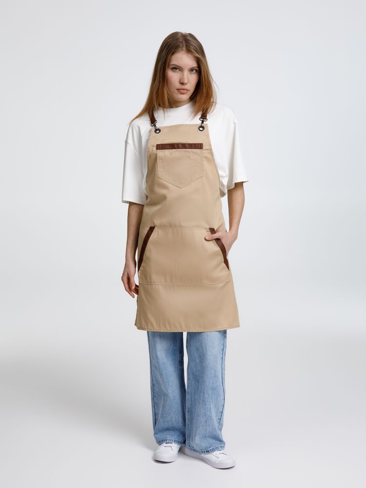 - Материал: фартук - полиэстер 65%, хлопок 35%, плотность 240 г/м²; лямки - искусственная кожа; фурнитура - металл