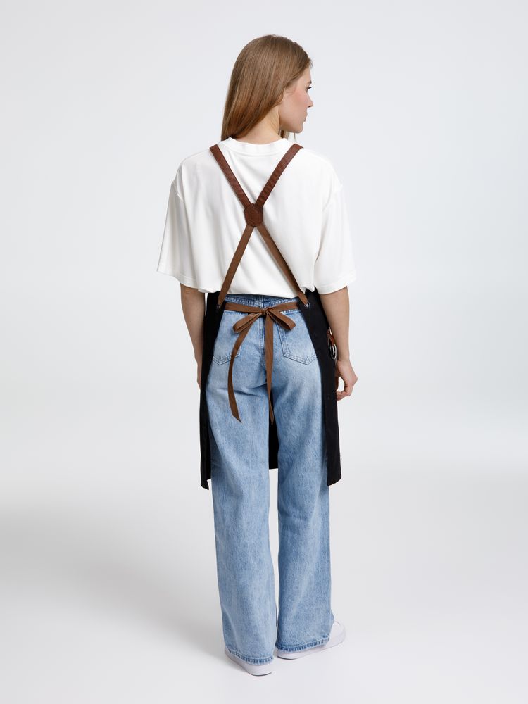 Функциональные карманы на груди и подоле эффектно украшают фартук, изготовленный из качественной дышащей плотной износостойкой ткани. Благодаря динамичным крестообразным лямкам он отлично сидит как на мужской, так и на женской фигуре. Кроме того, съемные лямки упрощают процесс стирки в стиральной машине.