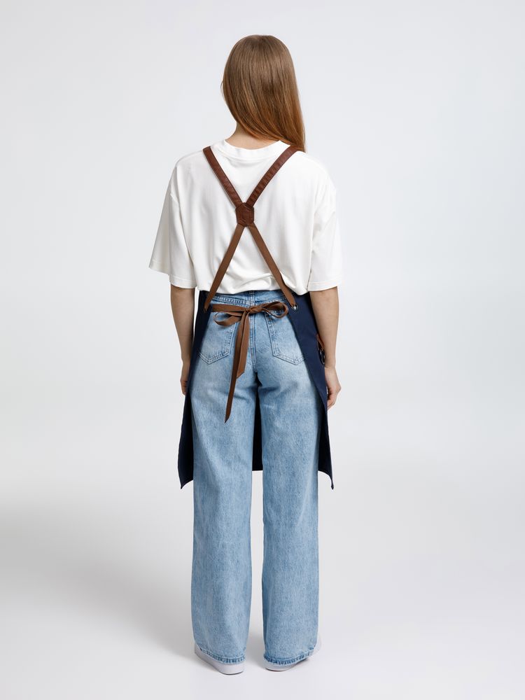 Функциональные карманы на груди и подоле эффектно украшают фартук, изготовленный из качественной дышащей плотной износостойкой ткани. Благодаря динамичным крестообразным лямкам он отлично сидит как на мужской, так и на женской фигуре. Кроме того, съемные лямки упрощают процесс стирки в стиральной машине.