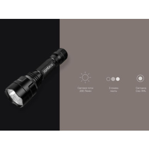 • Светодиод: Cree XPE • Максимальная яркость: 200 люмен • Элементы питания: 1 х АКБ 18650 Li-ion; рекомендуется Rombica NEO X8 (НЕ ИДУТ В КОМПЛЕКТЕ) • Схема защиты от переполюсовки элементов питания – защищает от неправильной установки батарей • Простое и быстрое управление одной кнопкой • На фонаре закаленное ультра чистое стекло с антибликовым покрытием • Эффективная дальность луча: до 123 м • Ударопрочность: до 2 м • Оптическая система: отражатель (гладкий) • Материал корпуса: авиационный алюминий + ударопрочный пластик (покрытие корпуса - анодирование III степени) • Включение и переключение режимов: кнопкой на торце фонаря • 3 режима работы: полная, средняя, мерцание