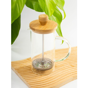 Френч-пресс с изящным сочетанием прозрачного боросиликатного стекла и натурального дерева станет стильным акцентом на кухне.