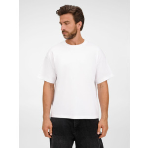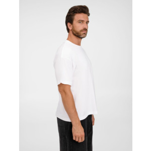 Футболка оверсайз унисекс с круглым вырезом и без боковых швов. Выполнена из смеси переработанного и обычного хлопка. Благодаря повышенной плотности отлично держит форму.