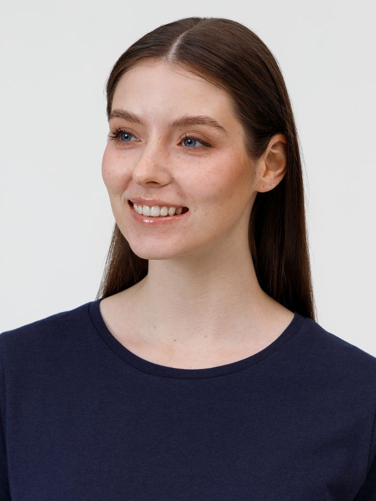 Кроеная женская футболка приталенного силуэта с круглым воротом.