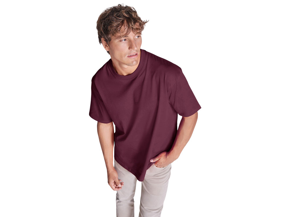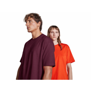 Оверсайз футболка с коротким рукавом. Круглый вырез горловины обработан рибом 2х1. Боковые швы. Широкая двойная отстрочка по рукавам и низу.