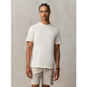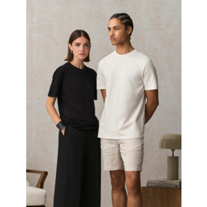 Благодаря идеальным пропорциям гребенного хлопка и переработанного полиэстера в составе, а также дополнительным обработкам ее полотно обладает повышенной мягкостью, шелковистостью и очень приятно на ощупь. Кроме того, футболка меньше мнется, не теряет форму после стирок и обладает высоким показателем Qmax — коэффициента мгновенной теплопроводности, который показывает, как быстро ткань забирает тепло от кожи. Именно он обеспечивает ощутимый эффект свежести и прохлады при первом прикосновении к ткани.