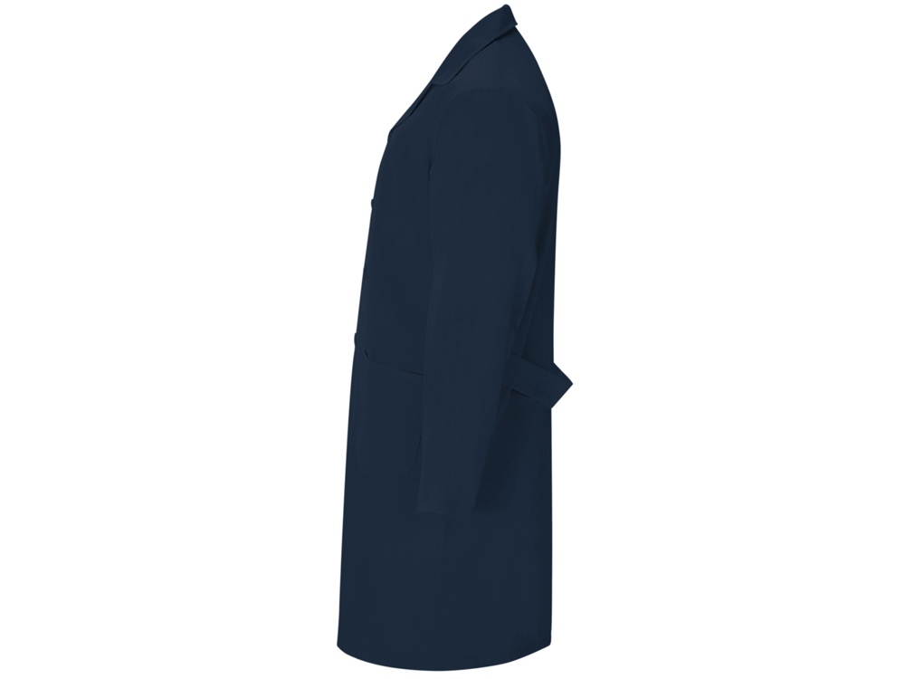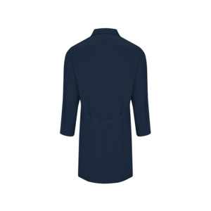 Халат для персонала с длинными рукавами. · Воротник с лацканами. · Центральная застежка на 5 пуговиц в тон. · Один нагрудный карман и два кармана по бокам. · Пояс сзади.