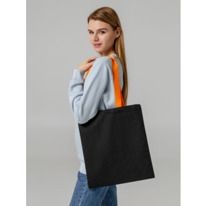Холщовая сумка BrighTone, черная с оранжевыми ручками