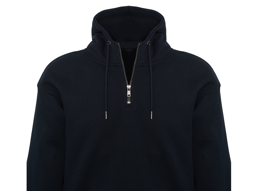 Худи с капюшоном ворот на молнии. Шнур в капюшоне с металлическими наконечниками. Отделка горловины спинки внутри тесьмой, Риб 2х2 по низу изделия и манжетам. Удобный карман кенгуру.