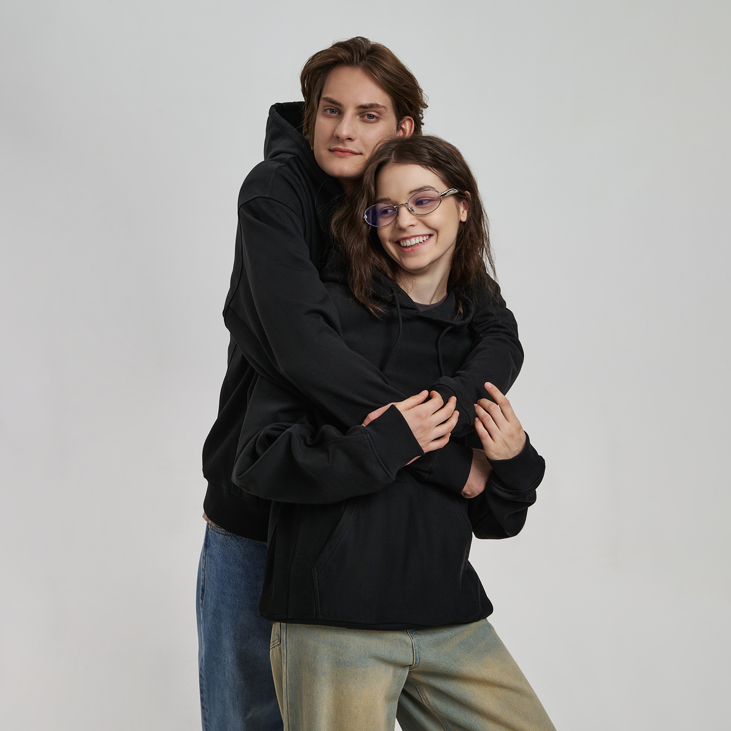 Модель выполнена из хлопкового футера плотностью 420 г/м (без начёса). Плотная, но мягкая ткань хорошо держит форму и при этом приятна к телу. Использована пряжа compact penye — прочная, тактильно деликатная, высокого качества.
