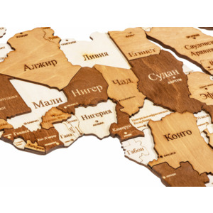 Настенная сборная карта мира из березовой фанеры — прекрасное украшение как офиса, так и квартиры. Карта крепится на стену при помощи двустороннего скотча, который уже прикреплен с тыльной стороны каждого элемента. А еще можно оживить карту корабликами и самолетами, которые тоже идут в комплекте, устремив их к тем странам, куда вы бы хотели полететь. Карта состоит из фрагментов, которые можно расположить как близко друг к другу, так и на расстоянии — все зависит от вашего вкуса и желания. Для сборки карты приложена специальная книжечка-инструкция с последовательностью по шагам. Карта максимально детализирована: города, столицы, границы и названия четко выделяются и легко различимы благодаря гравировке. Страны имеют разный оттенок бежевого, чтобы их было проще визуально отличить друг от друга издали. Важный плюс — карту можно брендировать нанесением на шильд, который крепится на коробку, или же на саму коробку. - брендирование на шильд для коробки или на саму коробку - подарок для детей и взрослых - поставляется в крафтовой коробке - самолеты и корабли в комплекте - страны на картах запечатлены в границах, актуальных на 31.08.2022 - легкая сборка