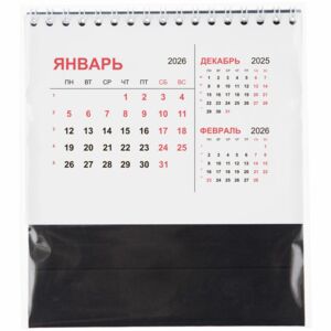 Компактный настольный календарь с датировкой на 2026 год.