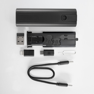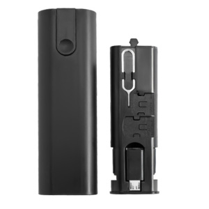 В этот комплект аксессуаров входят самые необходимые мелочи для широко ряда мобильных устройств:1. Кабель для зарядки Type-C с поддержкой быстрой зарядки PD до 60Вт;2. Переходник (адаптер) с Type-C на Lightning с поддержкой быстрой зарядки PD до 20Вт;3. Переходник (адаптер) с Type-C на Micro-USB с поддержкой быстрой зарядки PD до 18Вт;4. Переходник (адаптер) с Type-C на USB-A;5. Эджектор (скрепка) для SIM-карты. Внутри пластикового кейса также находится лоток для хранения SIM-карты и лоток для хранения карты microSD.Помимо этого, внешний кейс комплекта оборудован выдвижной подставкой для телефона.Этот аксессуар станет отличным и полезным подарком для любого человека и особенно понравится тем, кто часто ездит за границу. Компактный размер 107*30*16мм позволяет переносить комплект прямо в кармане или с легкостью разместить в сумке или рюкзаке.