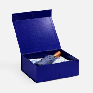 Коробка из переплетного картона с лайнером, ламинированым полуглянцевой текстурной пленкой и устойчивого к царапинам. Крышка на двух магнитах дополнительно фиксируется лентой.Толщина картона 2 мм.