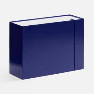 Плотная коробка из переплетного картона толщиной 2 мм с практичной конструкцией на двух створках. Складная система с уже нанесенным двусторонним скотчем позволяет быстро собрать коробку без дополнительных инструментов. Лайнер с полуглянцевым ламинированием устойчив к повреждениям и надолго сохраняет безупречный вид.