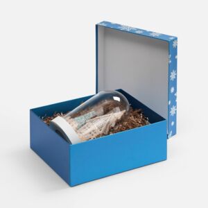 Коробка выполнена из переплетного картона толщиной 1,5 мм, кашированного бумагой TPG с тиснением серебристой фольгой.