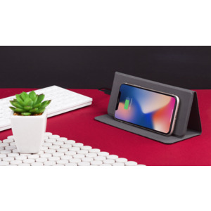 Именно для таких людей мы предлагаем современный настольный аксессуар – коврик-трансформер для мыши с функцией беспроводной зарядки, изготовленный из переработанного пластика (RPET). Коврик легко трансформируется в настольную подставку для более удобного просмотра фото/видео на экране смартфона (функция беспроводной зарядки сохраняется).
