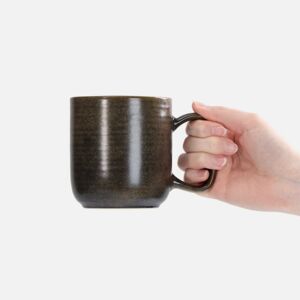 Кружка покрыта реактивной глазурью — особым видом керамического покрытия, компоненты которого вступают в химическую реакцию во время обжига при температуре 1200°C и выше. Из-за непредсказуемого взаимодействия компонентов создаются уникальные переливы, узоры и текстуры, поэтому в партии невозможно найти два абсолютно одинаковых изделия.