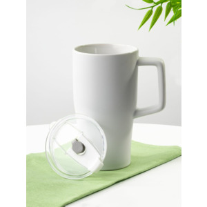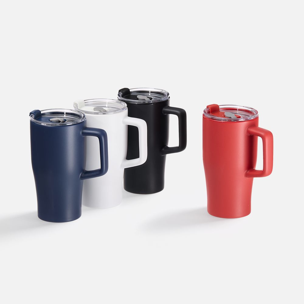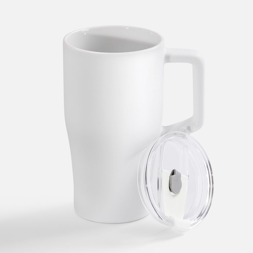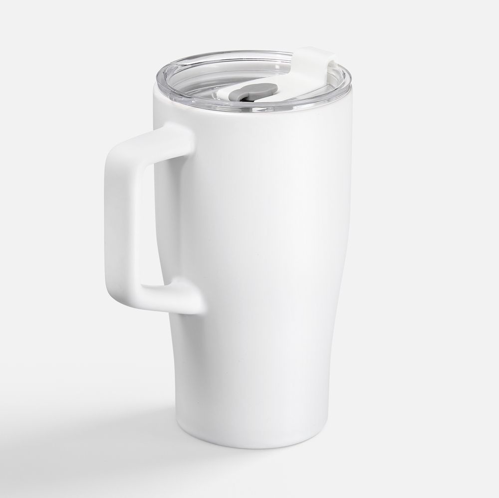 Эргономичная ручка удобно лежит в руке, а прозрачная крышка с отверстием для питья не дает содержимому разлиться на ходу или быстро остыть. Последнее особенно важно с учетом большого объема — 520 мл чая, кофе или какао хватит надолго.