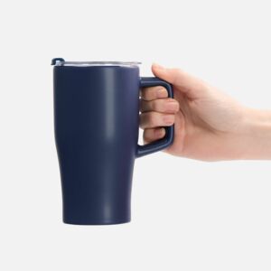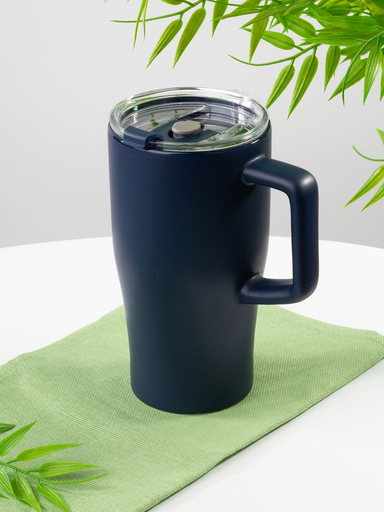Эргономичная ручка удобно лежит в руке, а прозрачная крышка с отверстием для питья не дает содержимому разлиться на ходу или быстро остыть. Последнее особенно важно с учетом большого объема — 520 мл чая, кофе или какао хватит надолго.