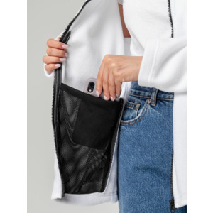 Два кармана с сетчатой подкладкой расположены в боковых швах, которые немного смещены вперед, — так удобней засовывать руки. Они достаточно глубокие, чтобы положить телефон, очки и другие нужные вещи.