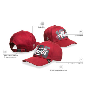 3Д-вышивка поверх принта на передней панели Плоская вышивка на боковой панели Жаккардовый лейбл на козырьке Цены: При заказе 576 шт. – 1987р. При заказе 1008 шт. – 1599р. Изготовление и доставка образцов в Москву – 60 дней; Производство и доставка партии в Москву – 180 дней. При авиадоставке срок сокращается до 60 дней, цена изделия увеличивается на 370р. Все логотипы на образце сделаны справочно для вашего ознакомления и будут изменены в соответствие с вашим дизайном в процессе производства. 58 см - минимальный размер, с помощью застёжки его можно увеличить до необходимого.