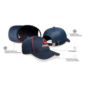 6 клиньев Металлическая застежка 100%хлопок, твил, 280гр м2 3Д-вышивка на переднем клину Трафаретная печать на куполе и на нижней части козырька Принтованый сэндвич Цены: При заказе 576 шт. – 1942р. При заказе 1008 шт. – 1568р.Изготовление и доставка образцов в Москву – 60 дней;Производство и доставка партии в Москву – 180 дней. При авиадоставке срок сокращается до 60 дней, цена изделия увеличивается на 370р.Все логотипы на образце сделаны справочно для вашего ознакомления и будут изменены в соответствие с вашим дизайном в процессе производства.58 см - минимальный размер, с помощью застёжки его можно увеличить до необходимого.
