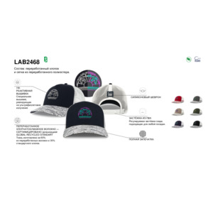 5 клиньев PVC-застежка, козырек и передняя панель из 100% переработанного хлопка Полиэстровая сетка Специальная УФ-чувствительная вышивка на переднем клину (меняет цвет на солнце от бежевого до фуксии) Принт на нижней части козырька Силиконовый шеврон сзади Цены: При заказе 576 шт. – 2985р. При заказе 1008 шт. – 2561р.Изготовление и доставка образцов в Москву – 60 дней;Производство и доставка партии в Москву – 180 дней.При авиадоставке срок сокращается до 60 дней, цена изделия увеличивается на 370р.Все логотипы на образце сделаны справочно для вашего ознакомления и будут изменены в соответствие с вашим дизайном в процессе производства.58 см - минимальный размер, с помощью застёжки его можно увеличить до необходимого.