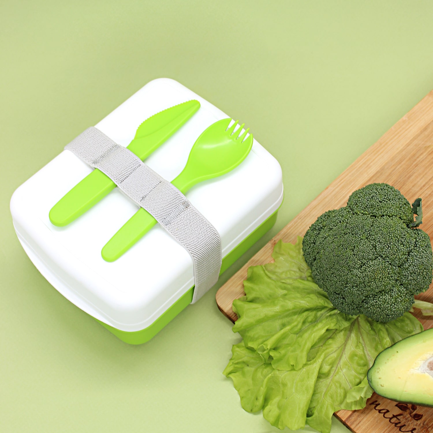 Ланч-бокс Lunch Green Line со столовыми приборами (салатовый)