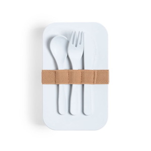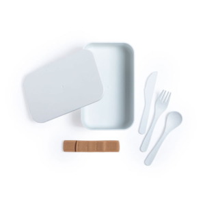 Ланч-бокс с крышкой и столовыми приборами: ложка, вилка, нож. Они крепятся на специальной резинке на корпусе изделия. Ланч-бокс изготовлен из полилактида - биоразлагемого пластика (BPA free), в основе химической формулы которого лежат молочная кислота и лактид. Сырьем для его производства служат ежегодно возобновляемые ресурсы: кукуруза и сахарный тростник. Ланч-бокс не рекомендуется использовать в микроволновой печи, посудомоечной машине и холодильнике