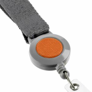 Лента для бейджа с ретрактором Devon, серая с оранжевым