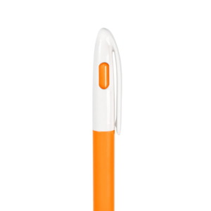 Ручка обтекаемой формы с поворотным механизмом и оригинальной деталью: когда стержень в нерабочем положении, цветная внутренняя кнопка полностью закрывает окошко в верхней части ручки, а когда стержень выдвинут - окошко наполовину открыто. Классическое сочетание глянцевого белого и цветного пластика создают отличный фон для логотипа или рекламного сообщения. • Цвет, близкий к Pantone 165C. • Корпус и клип из ABS пластика. • Поворотный механизм подачи стержня. • Пулевидный пишущий узел 1.0 мм. • Длина линии письма 600-800 м. • Цвет чернил синий. • Угол поворота корпуса 120°. • Сменный стержень X-20, длина 121 мм. Чтобы заменить стержень, нужно с небольшим усилием разъединить верхнюю и нижнюю части ручки, а после замены - соединить вместе до двух щелчков.