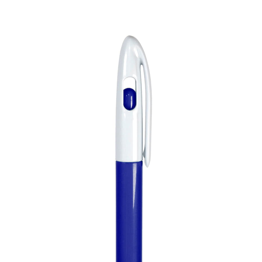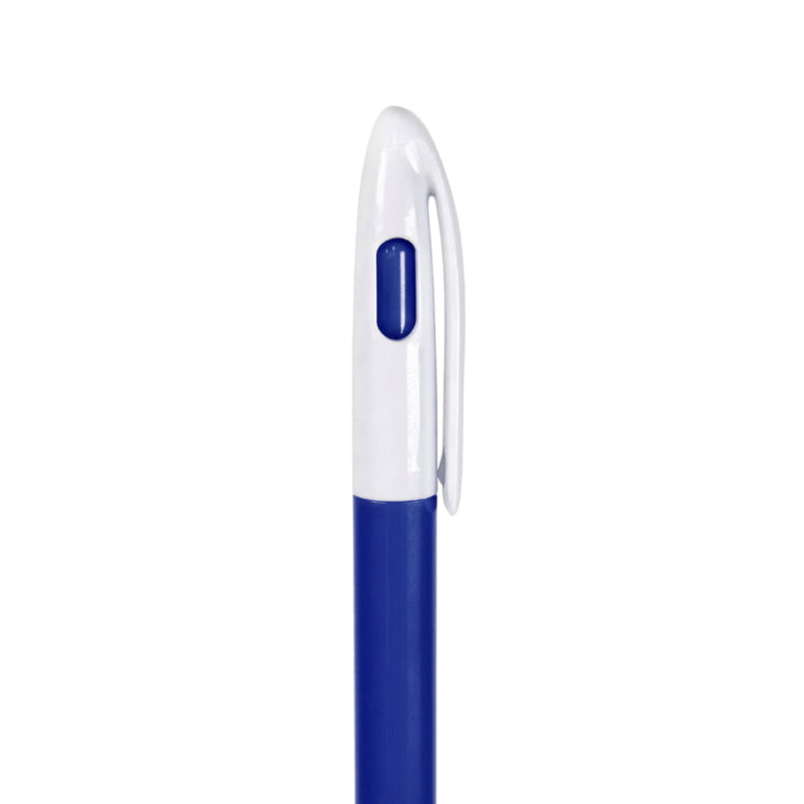 Ручка обтекаемой формы с поворотным механизмом и оригинальной деталью: когда стержень в нерабочем положении, цветная внутренняя кнопка полностью закрывает окошко в верхней части ручки, а когда стержень выдвинут - окошко наполовину открыто. Классическое сочетание глянцевого белого и цветного пластика создают отличный фон для логотипа или рекламного сообщения. • Цвет, близкий к Pantone 2747C. • Корпус и клип из ABS пластика. • Поворотный механизм подачи стержня. • Пулевидный пишущий узел 1.0 мм. • Длина линии письма 600-800 м. • Цвет чернил синий. • Угол поворота корпуса 120°. • Сменный стержень X-20, длина 121 мм. Чтобы заменить стержень, нужно с небольшим усилием разъединить верхнюю и нижнюю части ручки, а после замены - соединить вместе до двух щелчков.