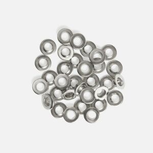 Не подходит для установки на трикотаж. Предназначен для укрепления краев отверстий, используемых для продевания стропы, шнурков, резинки. Легко послужит и элементом дизайна.
