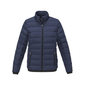 Женский утепленный пуховик. Стежка с утеплителем. Утеплитель из переработанного пуха, сертифицированного согласно GRS и RDS. Внутренний штормовой клапан с защитой подбородка. Эластичные манжеты и нижний край из гладкого трикотажа. Передние карманы с застежкой-молнией. Бегунки застежки-молнии с простой фиксацией. Фирменная резиновая петля для вешалки. Главный лейбл нанесен методом термоприклеивания, удобным для размещения рисунков на ткани.
