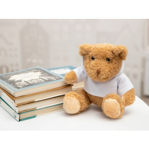 Белое худи позволяет нанести полноцветное изображение — так мишка станет по-настоящему уникальным.