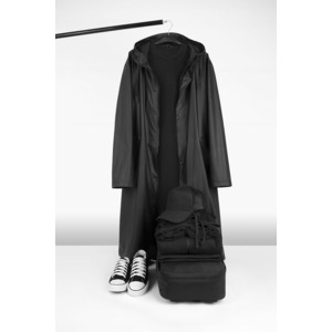 Плащ-дождевик с капюшоном из полиэстера с полиуретановым непромокаемым покрытием.