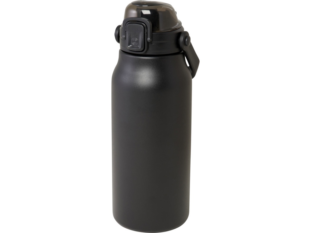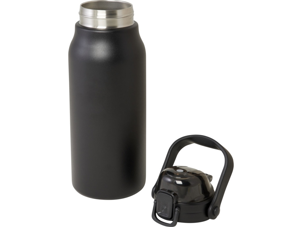 Эта большая бутылка из переработанной нержавеющей стали, сертифицированной RCS, позволит вам поддерживать водный баланс в течение дня и оставаться стильным. Медная вакуумная изоляция сохранит напитки горячими или холодными в течение нескольких часов, а благодаря складной ручке ее легко переносить. Бутылка герметична и имеет удобный механизм открывания с помощью кнопки. Объем составляет 1600 мл. Поставляется в подарочной коробке из переработанного картона. Recycled stainless steel, Recycled PP Plastic. Packaging: FSC Mix Credit P5.1 CU-COC-877277.