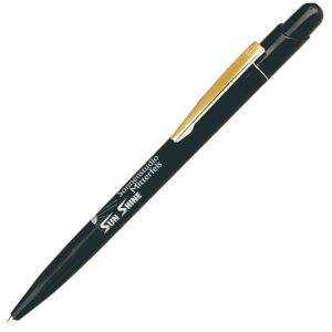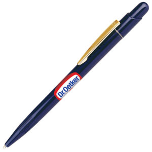 Элегантная ручка с серебристым клипом. Нажимной механизм подачи стержня. Цвет чернил синий.