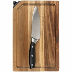 - Размеры: доска: 31,8х20,1х1,5 см; нож: 28х4,7х2,1 см; упаковка: 32,5х21,5х5 см