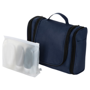 Набор "On air" состоит из двух предметов: Несессер для путешествий. Эргономичный и вместительный, имеет внутренние и внешние карманы и большое отделение внутри. Оснащён ручкой для переноски и крючком для подвешивания. Нейтральный лаконичный дизайн позволяет преподнести несессер как мужчине, так и женщине; Силиконовые ёмкости для косметических средств. Три флакончика по 90 мл каждый пригодятся для коротких поездок, а еще они вписываются в лимит большинства авиакомпаний по провозу жидкости в ручной клади. - силиконовые флакончики упакованы в полупрозрачную косметичку из EVA; - колпачок для зубной щётки в комплекте; - в несессере предусмотрены резинки и кармашки для мелких предметов, например, бритвенного станка.