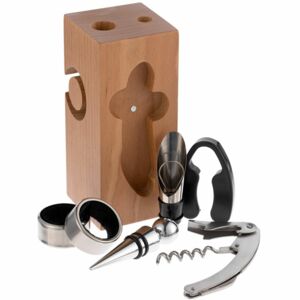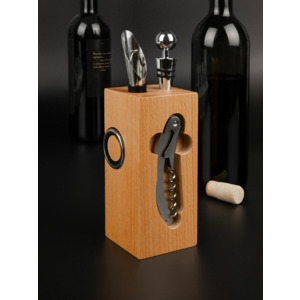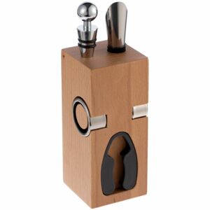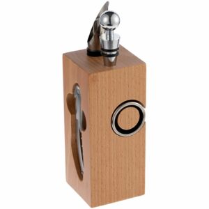 - Материал: подставка - дерево, бук; штопор - нержавеющая сталь; каплеуловитель - нержавеющая сталь; аэратор - нержавеющая сталь, силикон; пробка - нержавеющая сталь, силикон; нож для фольги - пластик, нержавеющая сталь