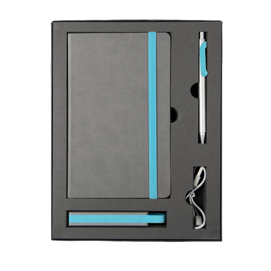 Набор FANCY:универсальное зарядное устройство(2200мАh), блокнот и ручка в подарочной коробке,голубо