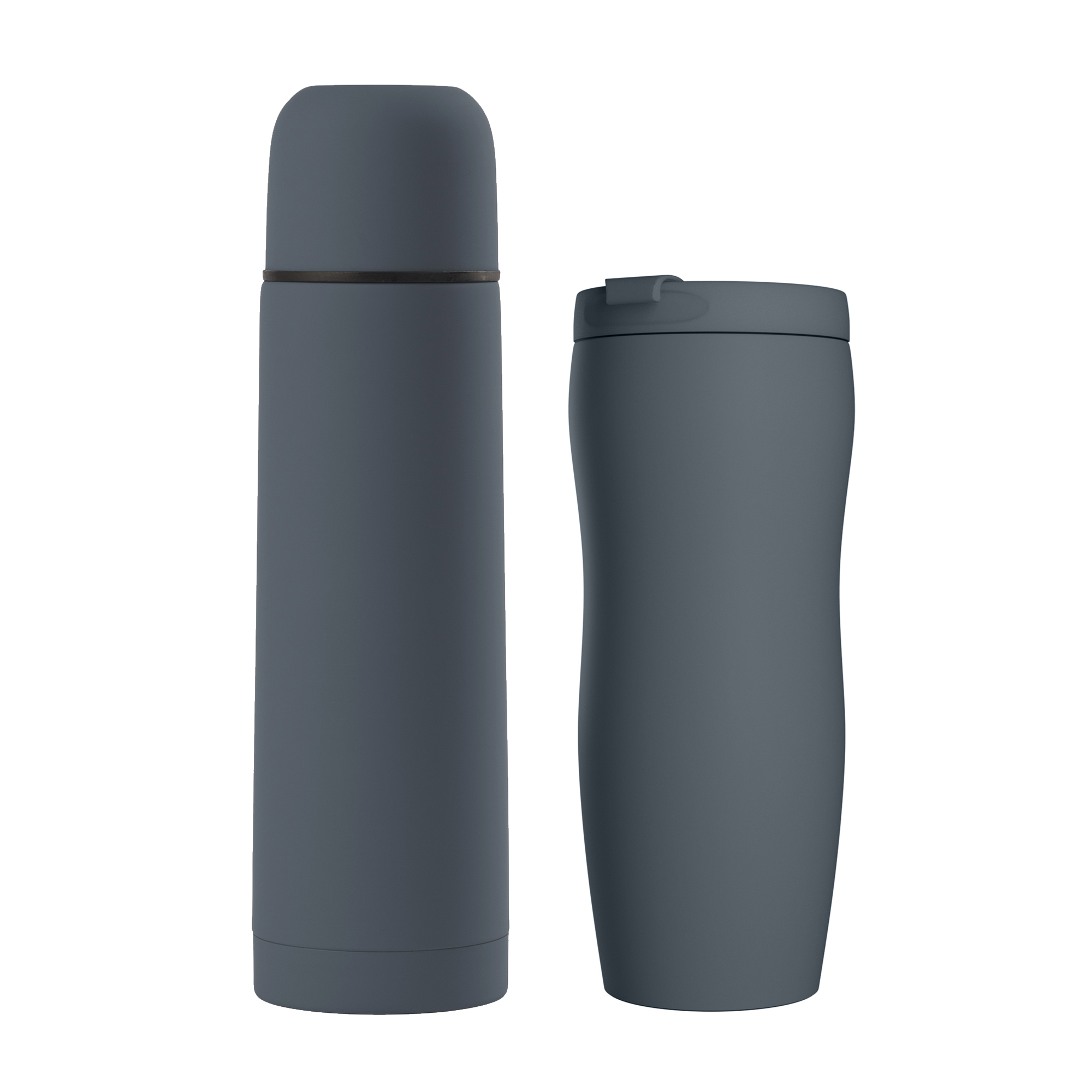 Подарочный набор "Грация" - стильное решение для людей с особым вкусом. Продукция в наборе имеет уникальное прорезиненное напыление с возможностью эффектной гравировки по окружности встык. Обтекаемая и изящная форма термоса "Крит" и термостакана "Монтана" с вашим логотипом привлечет внимание даже самого искушенного потребителя,а функциональность и практичность подарочного набора не позволит ему стоять на полке.