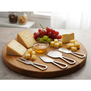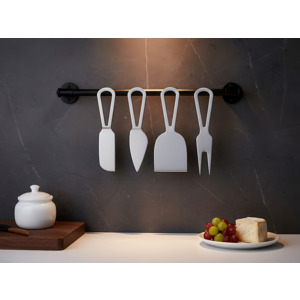 - Комплектность - вилка для сыра 13,5 см, нож листовидный 13,3 см, нож-лопатка 13,3 см, нож-топорик 13,3 см