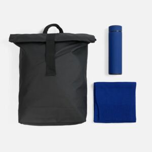 Составляющие набора — шарф и термос — помогут оставаться стильным и, что немаловажно, довольным даже в холодное время года. Модный и практичный рюкзак с удобной регулировкой объема роллтоп всегда подстроится под ситуацию, а потому станет просто незаменим как ежедневно в городе, так и в путешествии.