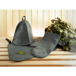 Банный набор «Парилка» станет отличным подарком для любителей отдыха в бане или сауне. Войлочная шапка защитит голову и волосы от высоких температур при банных и SPА-процедурах, коврик позволит с комфортом отдыхать на горячих полках, а рукавица — безбоязненно поддать пару или закрыть заслонку печи.