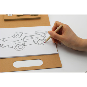 - Картонная папка позволяет удобно хранить все принадлежности и рисунки.