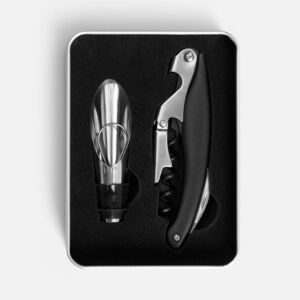 - Размеры: нож: 11х3х1 см, аэратор: 2,2х2х7,5 см; коробка:12,5х9,1х3,5 см